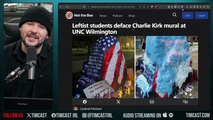 news1todaysnewsW1winner Liberals Desecrate Charlie Kirk Memorial, Gloat Over Assassination | Tim Pool By Americas Trusted News - September 19, 2025 0 80 FacebookTwitterPinterestWhatsApp IMAGE ABOVE FROM VIDEO BELOW TOP COMMENTS FROM VIDEO BELOW If this was a St. Floyd memorial, they’d be calling for arrests and rioting on campus. Remember when the Floyd mural got hit by lightening? Even nature is tired of this nonsense.